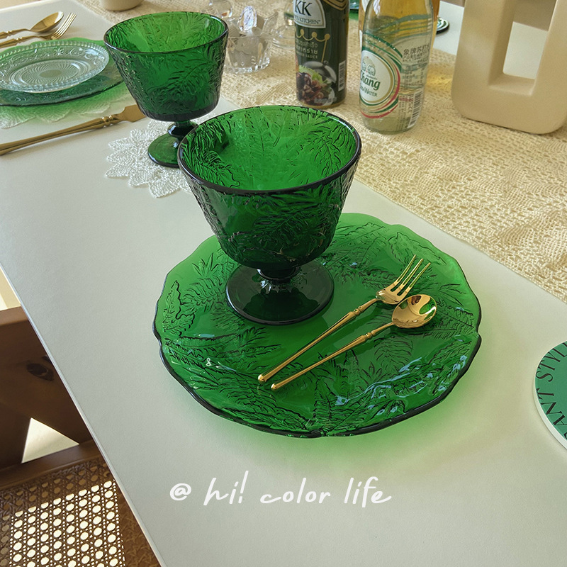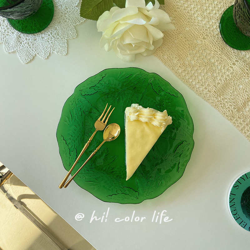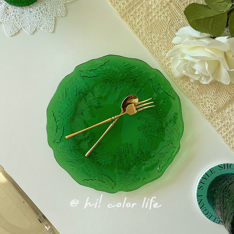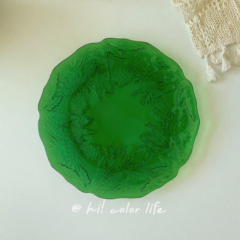 | nameOriginal | 5YA1 wholesale Korean ins style vintage emerald embossed glass plate commercial fruit salad irregular lace |