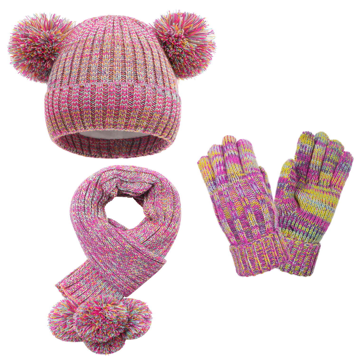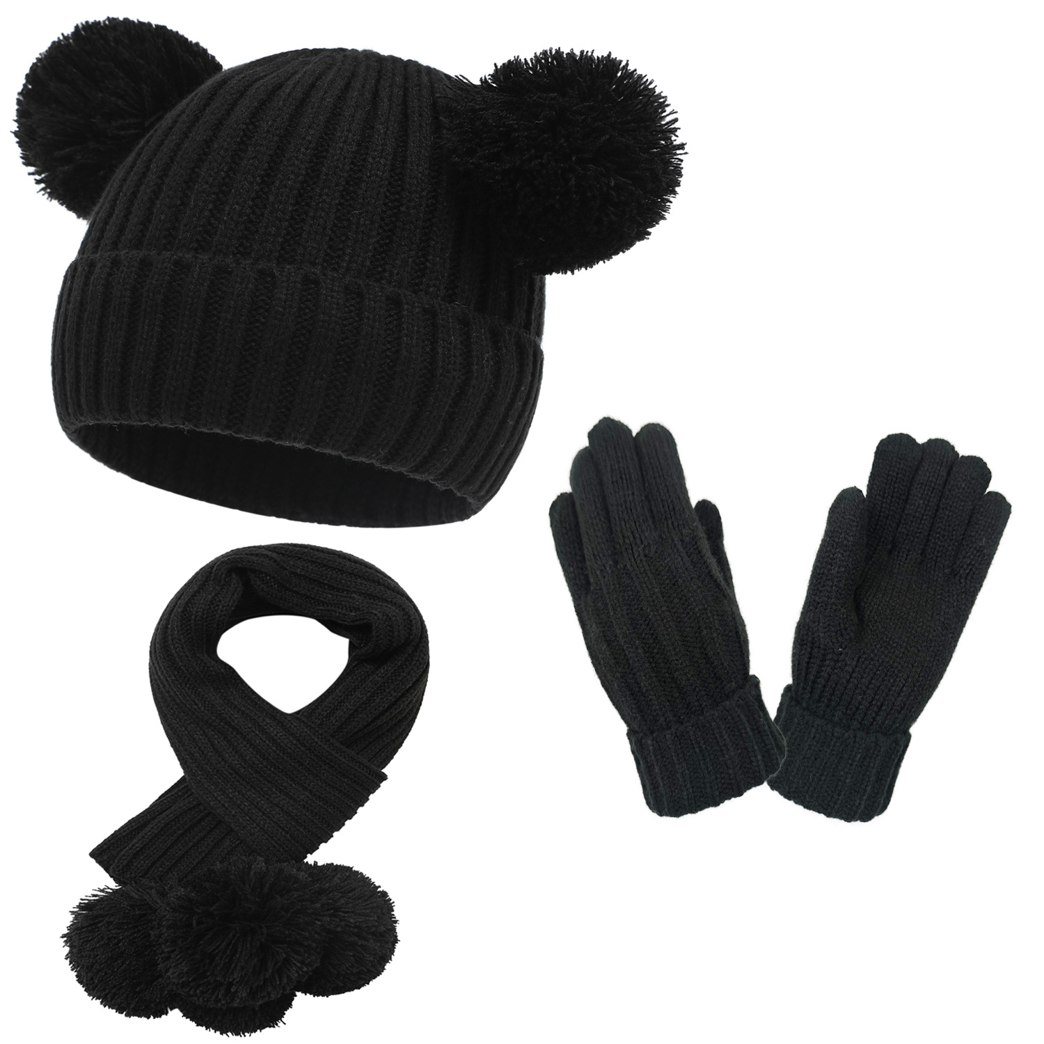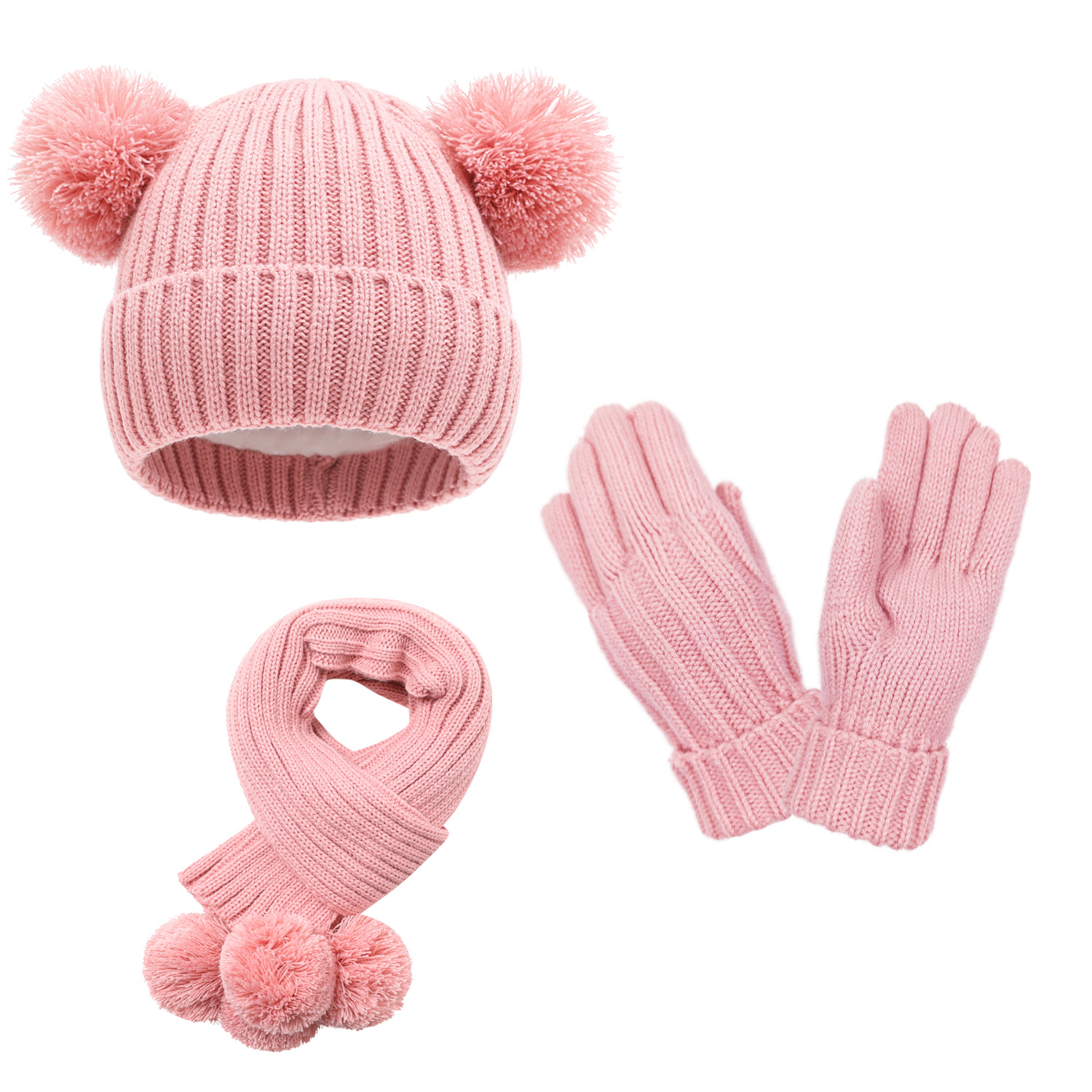 | nameOriginal | 6 color in stock children cute fur ball hat scarf gloves 3 suit winter hat fleece-lined cross-border e-commerce |