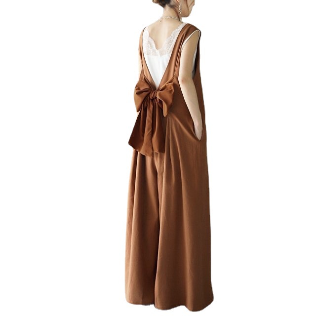 | nameOriginal | 6 Color Spot 2023 Japanese Style Retro Back Bow Strap Pants Side Pocket Elegant One-piece Strap Wide Leg Pants |
