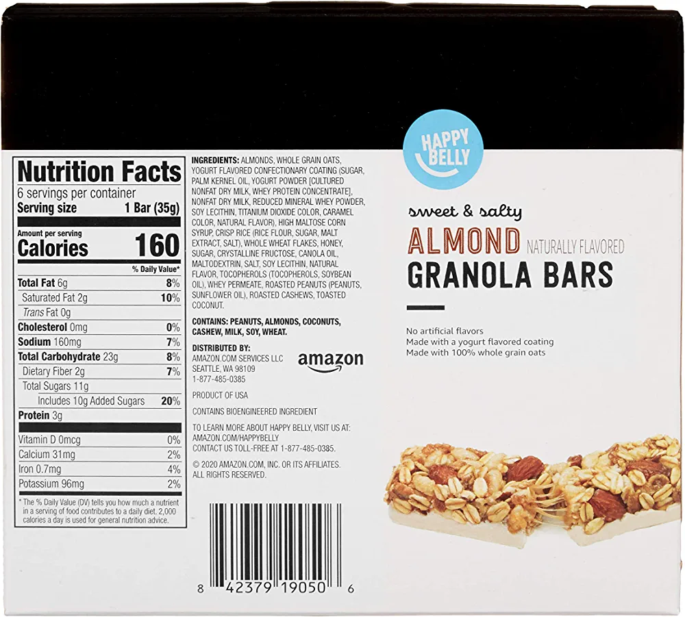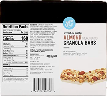 | nameOriginal | Happy Belly Sweet & Salty Almond Granola Bars, 1.2 Oz, 6 Ct |