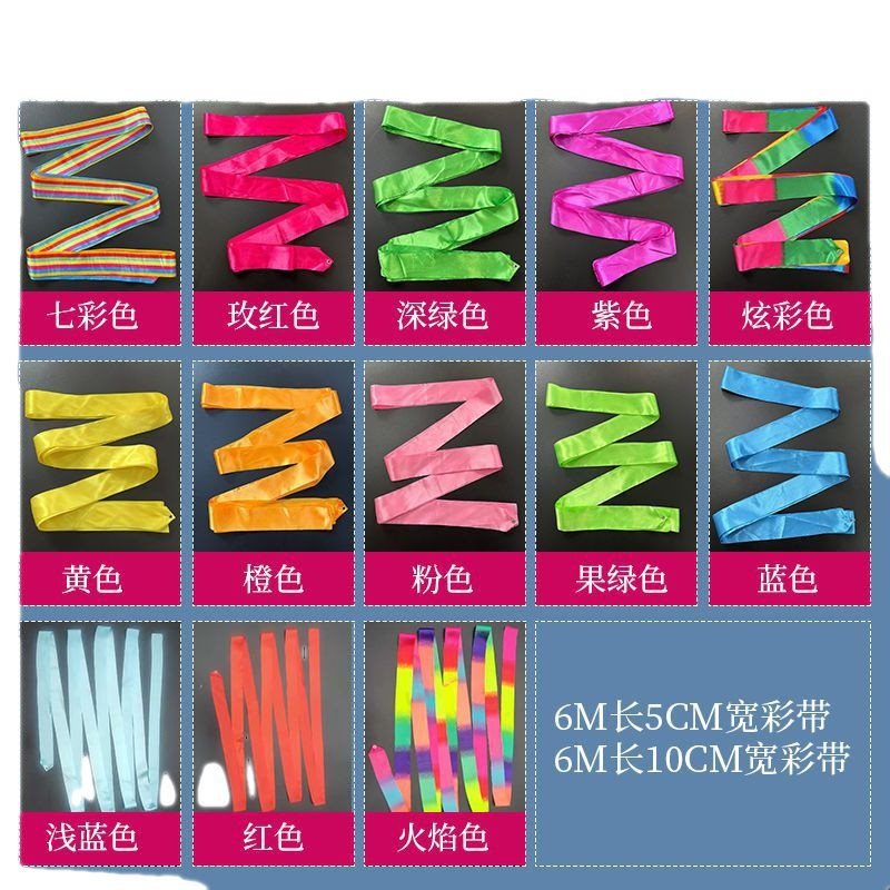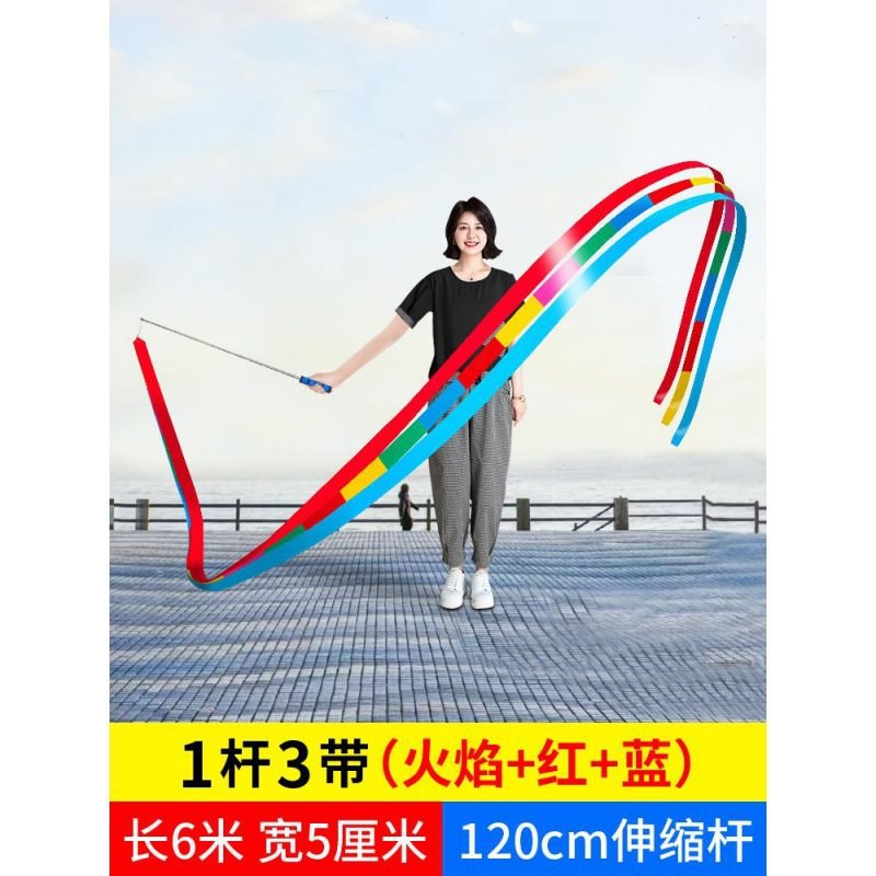 6 m Ribbon Dance Ribbon Middle-aged Youth Telescopic Rod Square Dance Colorful Ribbon Dance Ribbon Children Ribbon Rod