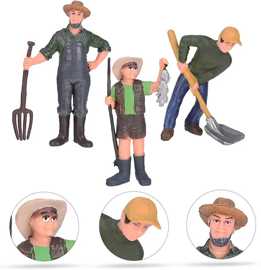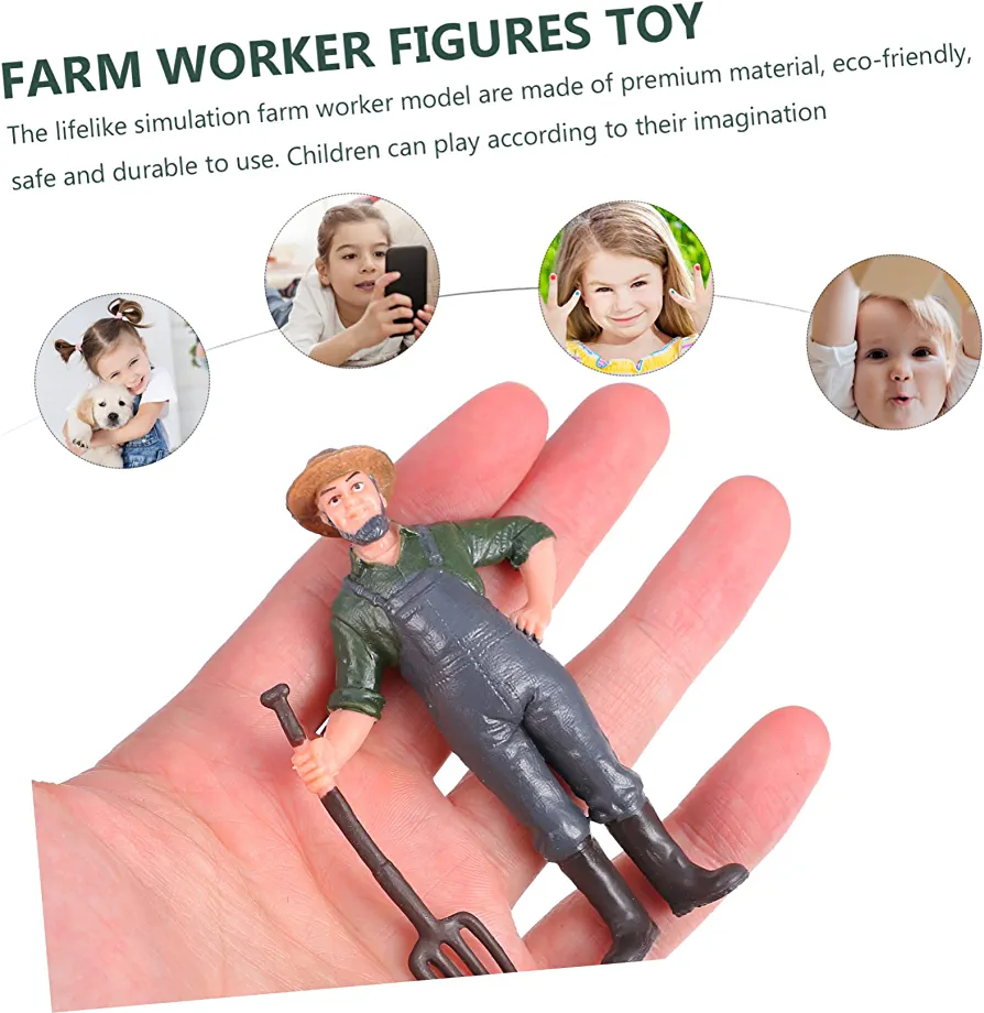 This package includes six farm worker models made of PVC material and available in assorted colors. Each model measures 7.50X7.00X2.00cm/2.95X2.75X0.79inch and is designed to be a unique decoration in a farm or yard setting. These durable play figures are perfect for little hands and can be used for various occasions such as model train layouts, architectural building, train station layouts, and school project models. They are also great for stimulating children’s imagination and keeping them away from video games. The lifelike simulation farm worker models are made of premium, eco-friendly, and safe materials, making them a perfect addition to any dollhouse collection or micro landscape decoration. These adorable and vivid ornaments with realistic shapes and fine workmanship are essential for DIY landscaping and will add a touch of decor to your model landscape.