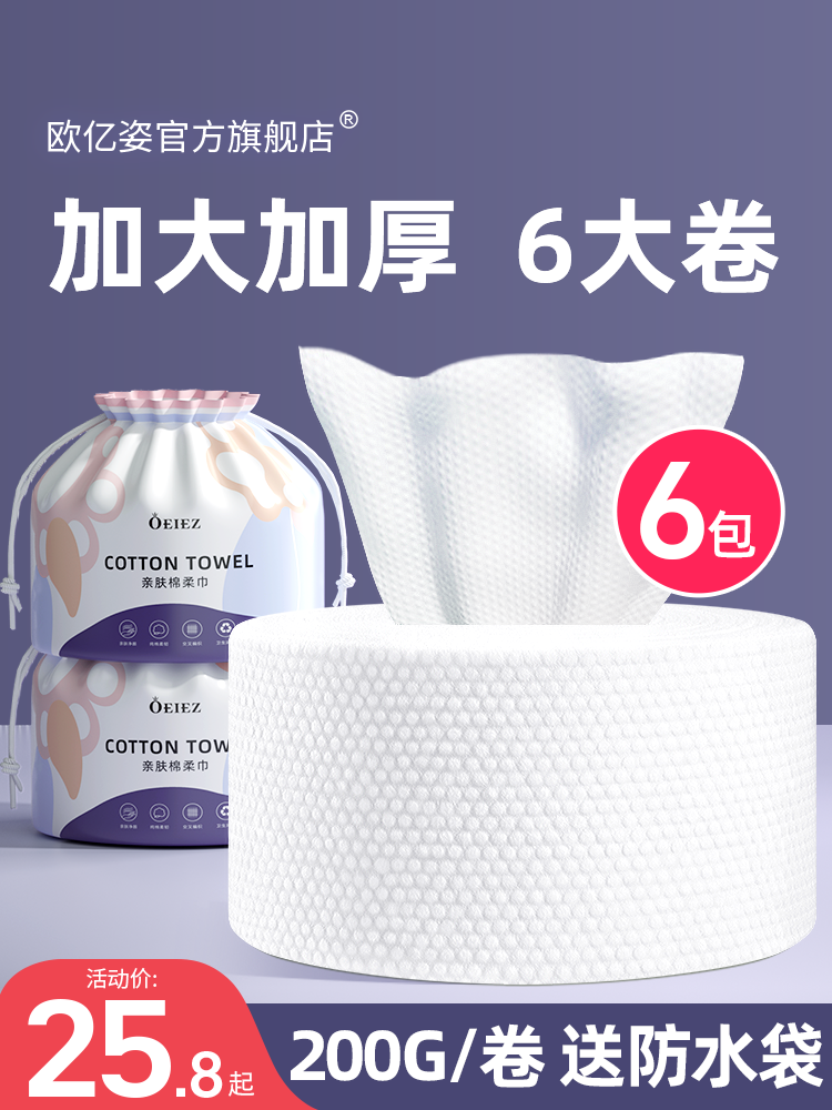 | nameOriginal | 6 rolls, Disposable pure cotton facial wash towel for women, facial cleansing roll, non-shedding, beauty salon official flagship |