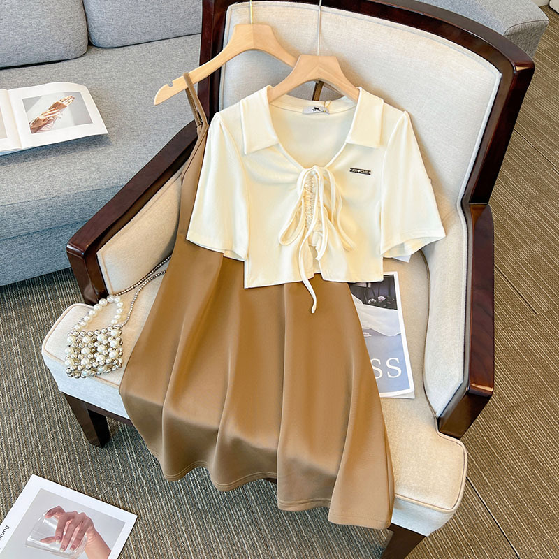 | nameOriginal | 60.00 kg-175.00 kg plus size chubby girl Strap dress Short Top T-shirt Two-piece 2024 Summer New |