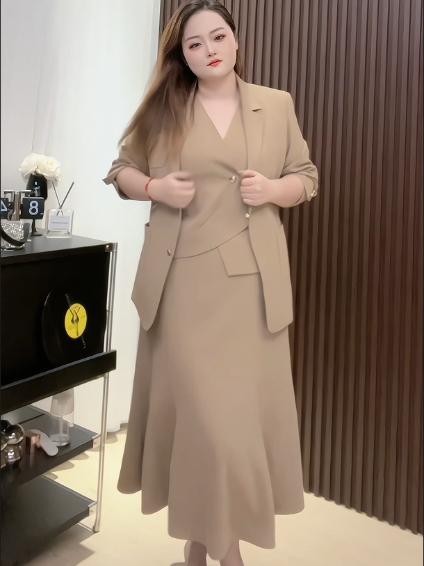 | nameOriginal | 60.00 kg-175.00 kg plus size women's clothing chubby girl suit jacket vest skirt three-piece suit professional casual temperament |