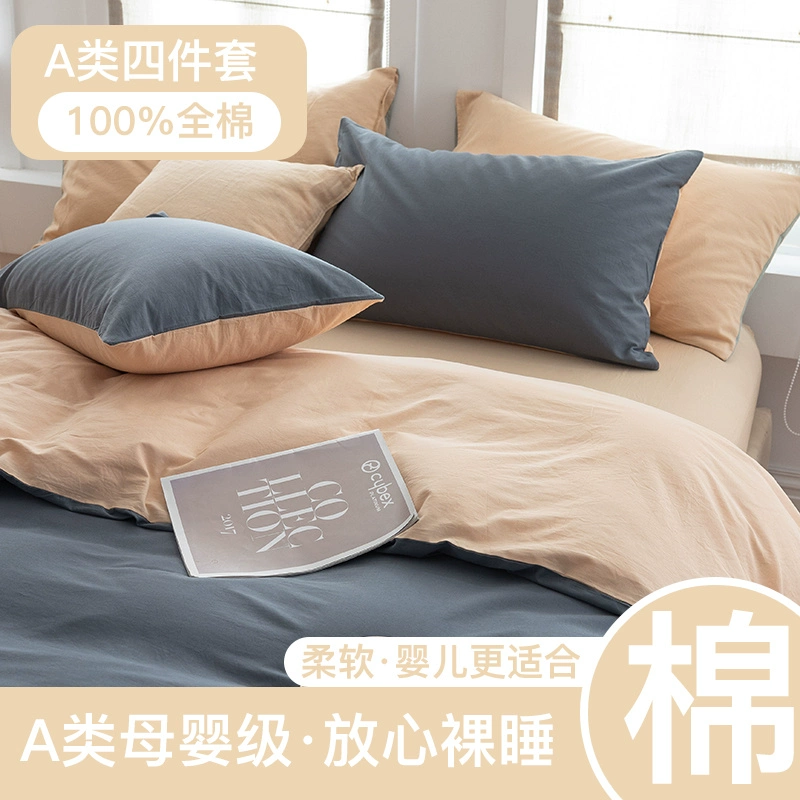| nameOriginal | 60-count long-staple cotton four-piece set, pure cotton, pure cotton, simple solid color quilt cover, bed sheet, dormitory three-piece set, light luxury and high-end |