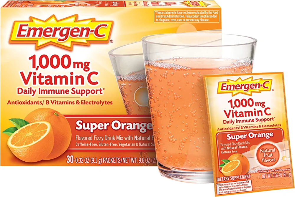 | nameOriginal | Emergen-C 1000mg Vitamin C Powder for Daily Immune Support Caffeine Free Vitamin C Supplements with Zinc and Manganese, B Vitamins and Electrolytes, Super Orange Flavor – 60 Count/2 Month Supply |