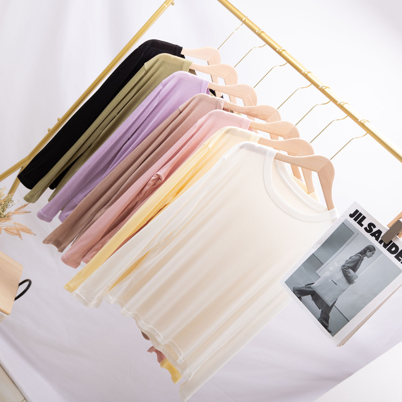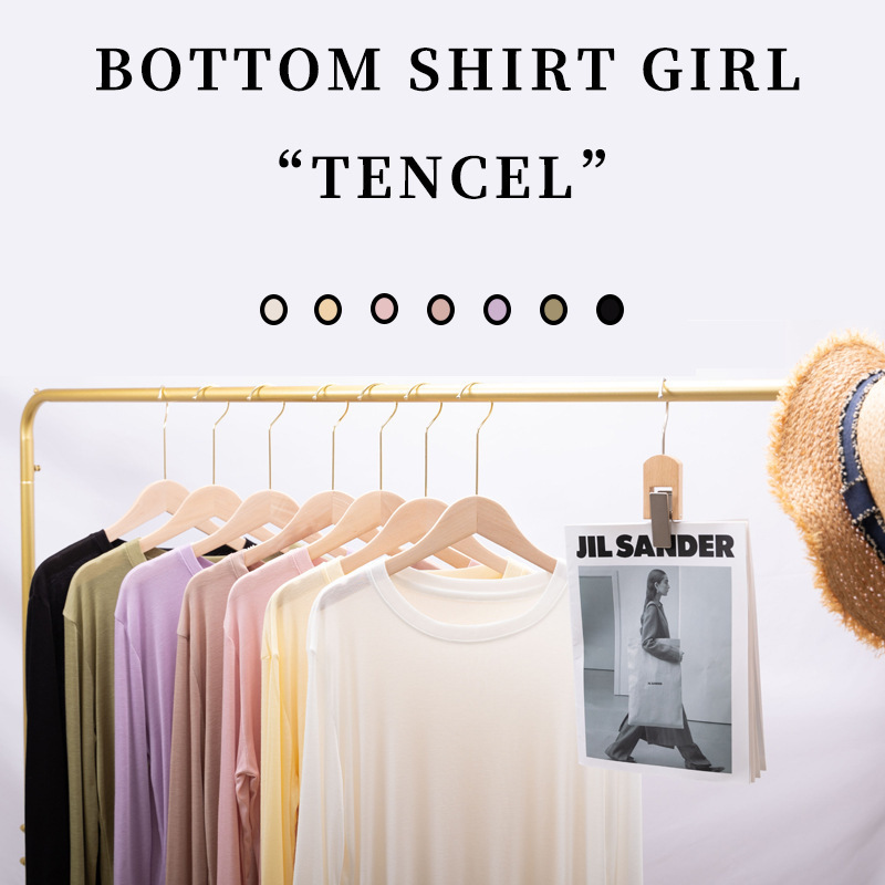 6008# Lyocell Tencel Base Shirt Women’s Round Neck Lightweight Loose Korean Style All-match Sunscreen Clothes Long Sleeve Women