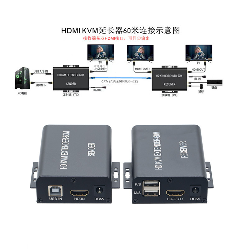 60m high definition HDMI KVM 60m Extender network cable RJ45 to HDMI USB Extender dual output