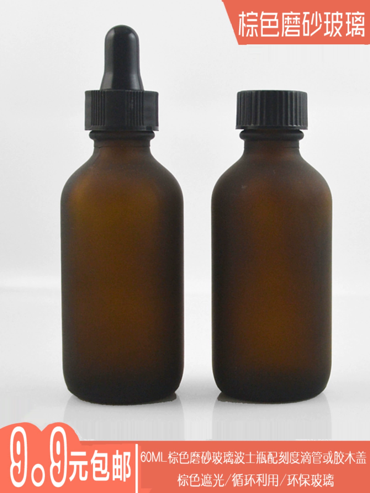 60ML brown frosted glass bottle with graduated dropper bakelite cover dropper bottle essence bottle travel refill empty bottle