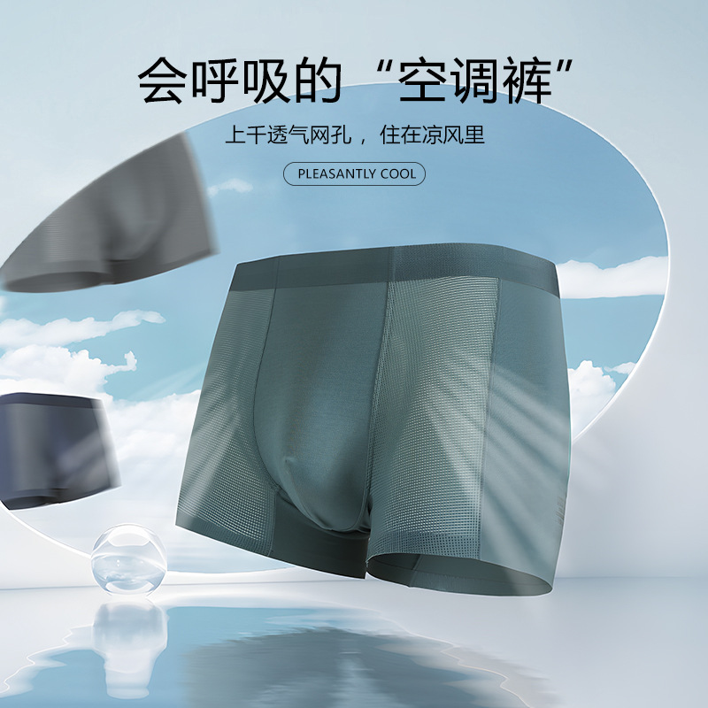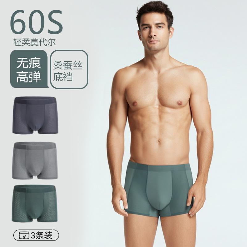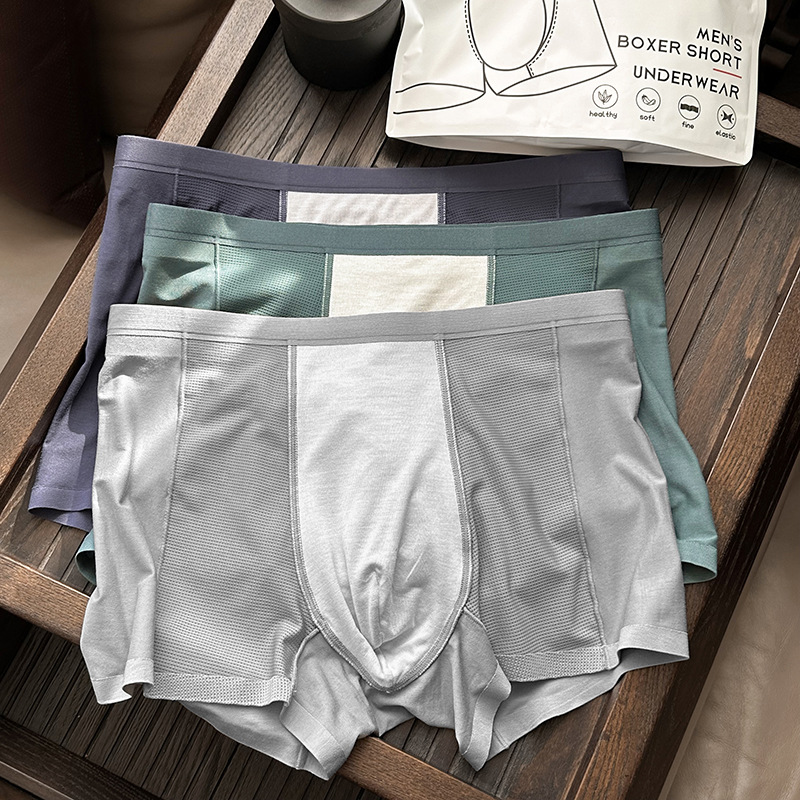 | nameOriginal | 60s modal silk crotch mesh breathable quick-drying men's three-piece air conditioning pants boxers soft elastic seamless underwear |