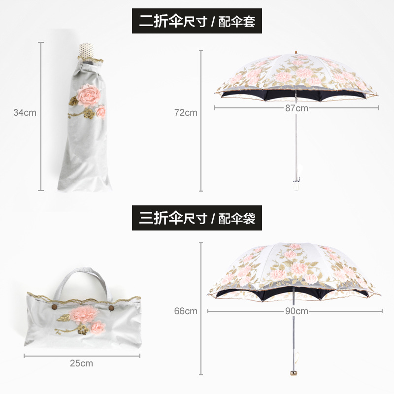 61K3 new UV-proof black glue sun umbrella two-fold lace embroidered sun umbrella Princess umbrella sun umbrella female umbrella
