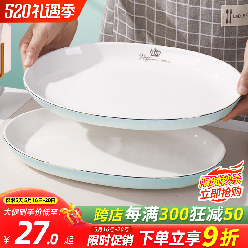 | nameOriginal | 61K3 steamed fish plate ceramic household 2022 New Golden edge light luxury high-looking large oval rectangular set |