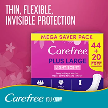 4. Carefree Plus Original Fresh Fragrance: These panty liners are super absorbent and come with a fresh fragrance for a clean and confident feeling. They come in a pack of 48 and are suitable for larger sizes.