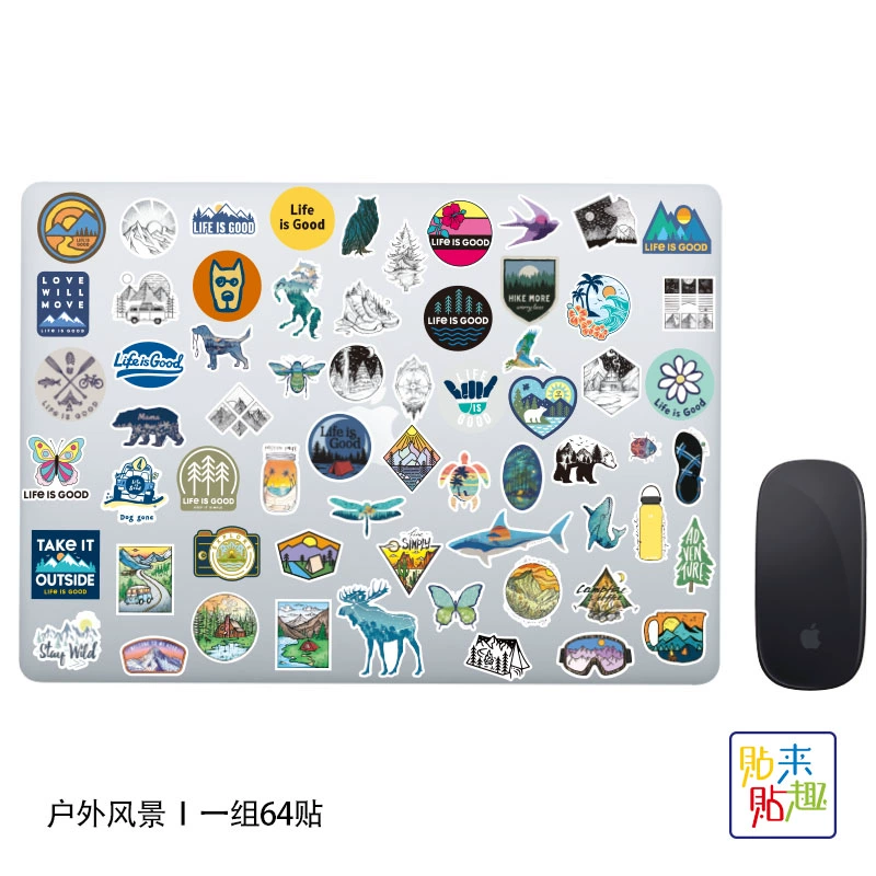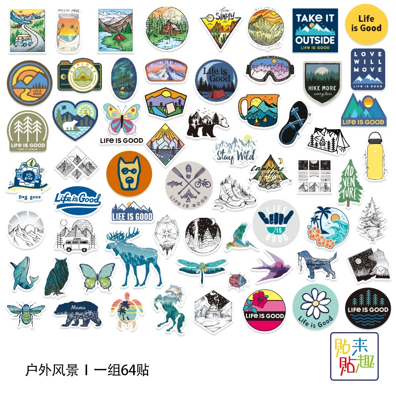 | nameOriginal | 64 small outdoor travel scenery stickers, personalized laptop, mobile phone power bank, tram helmet sticker, waterproof |