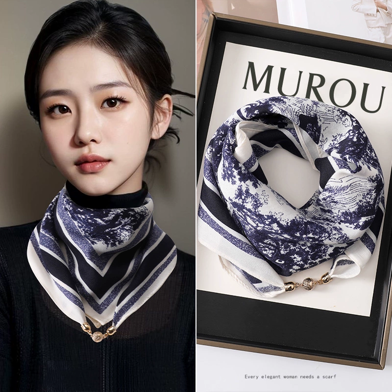 65*65 women's spring, autumn and winter niche hidden button temperament square scarf