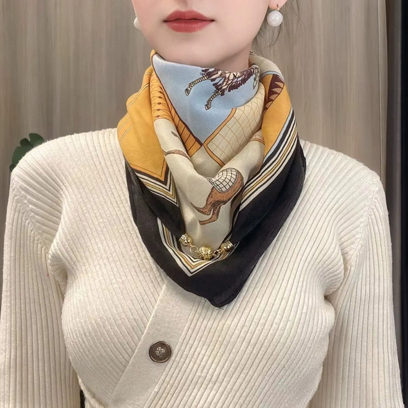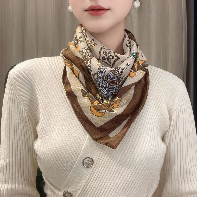 65*65 women’s spring, autumn and winter niche hidden button temperament square scarf