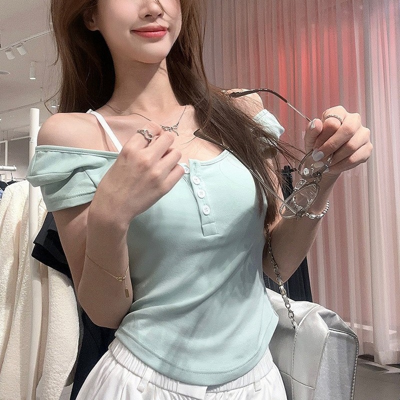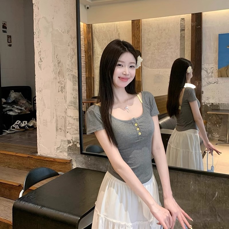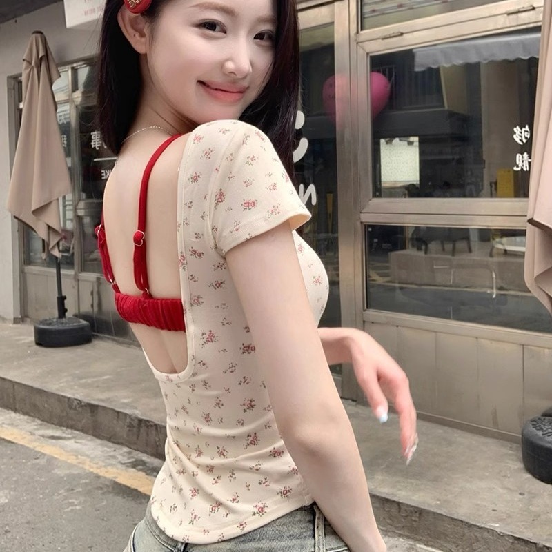 | nameOriginal | 6622 New Style Pure Floral Square Collar Shoulder Short-sleeved T-shirt with Chest Pad Backless Design Hot Girl Top |