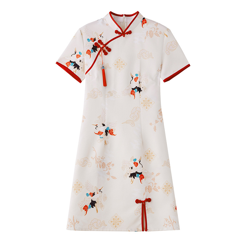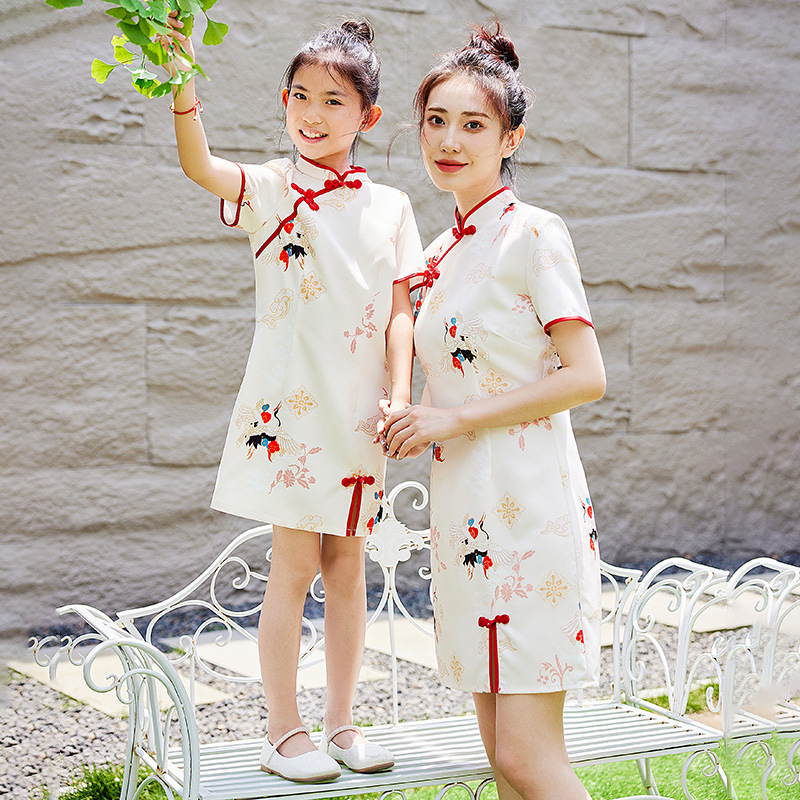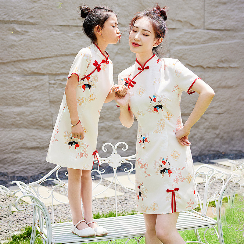 667 Parcel Dress Cheongsam Improved Mother and Daughter Dress 2024 Summer Dress New dress Chinese Style Crane Retro Western Style