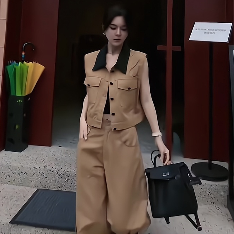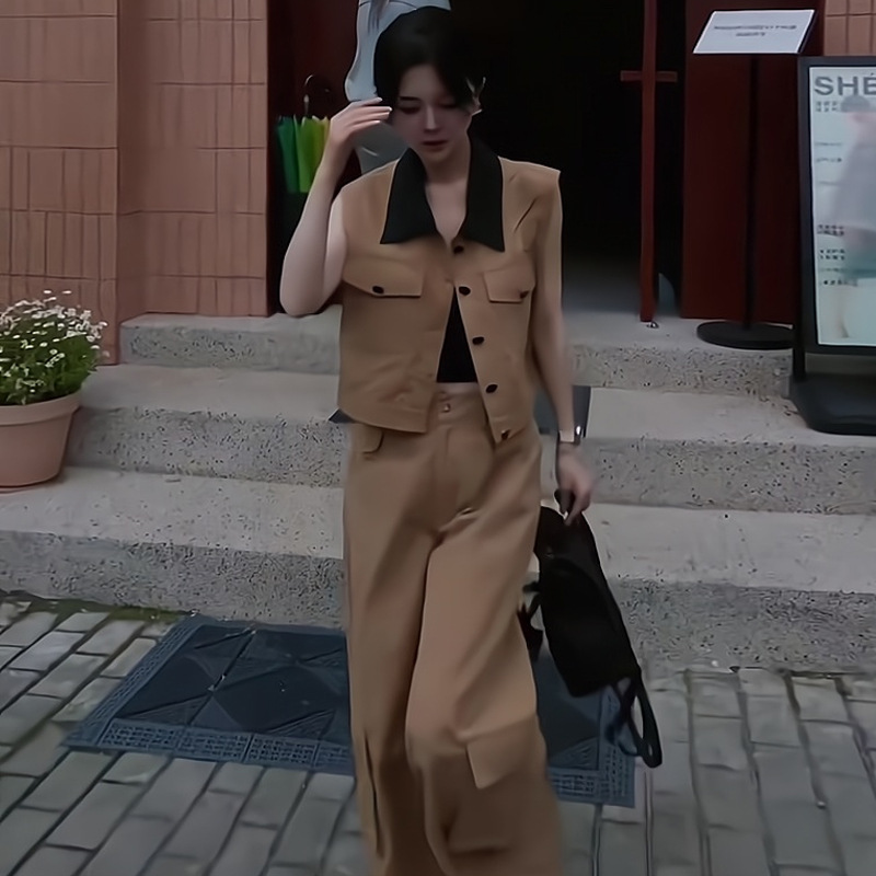 | nameOriginal | 6698 Caramel Cream Fashion Short Casual All-match Wide Leg Loose Elegant Set Vest Pants Two-piece Set |