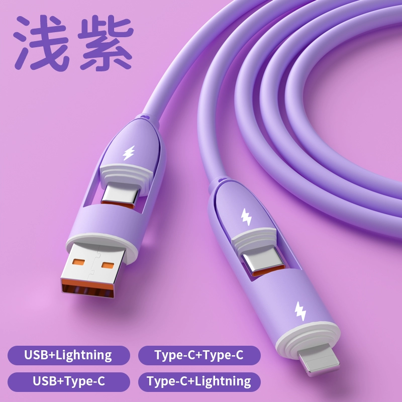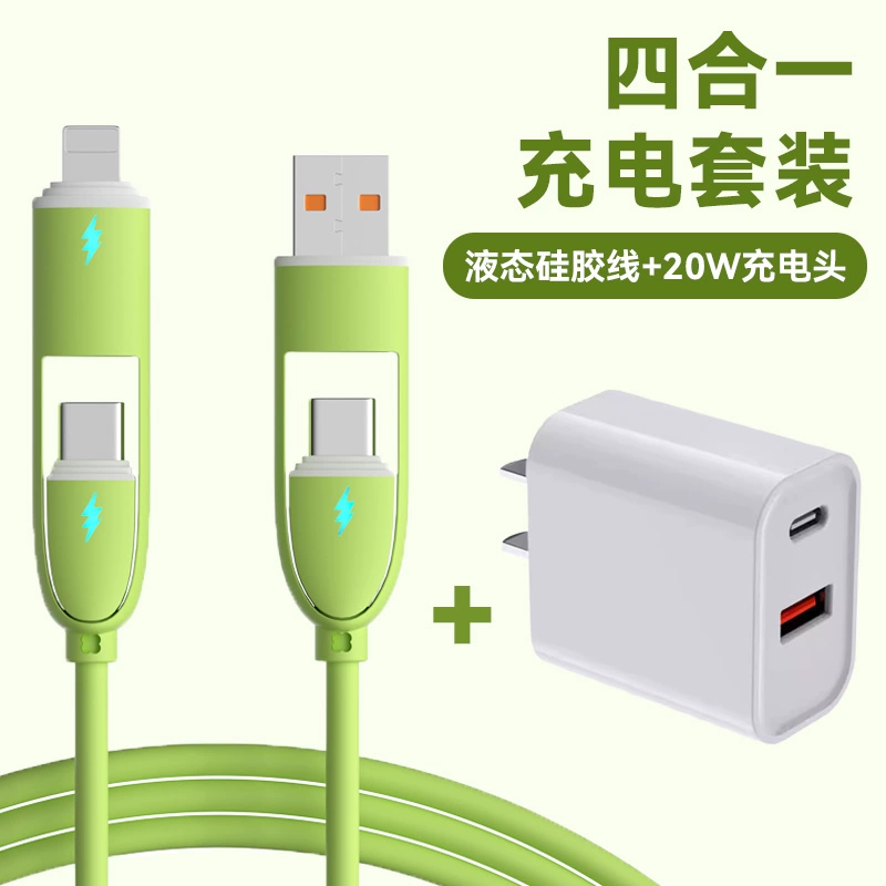| nameOriginal | 66w real silicone flash charging four-in-one data cable 27wPD+USB two-in-one suitable for Apple iPhone15 Huawei fast charging typec three-in-one mobile phone charging cable charger iPad tablet |