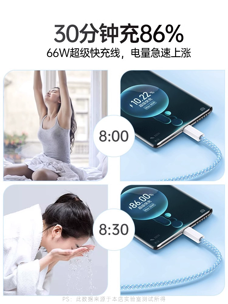 | nameOriginal | [66W super fast charging] type-c data cable 6A charging cable BS suitable for p20p30p40mate50 Huawei Xiaomi vivo Honor 9/60 Android phone extension 2 meters tpc charging |