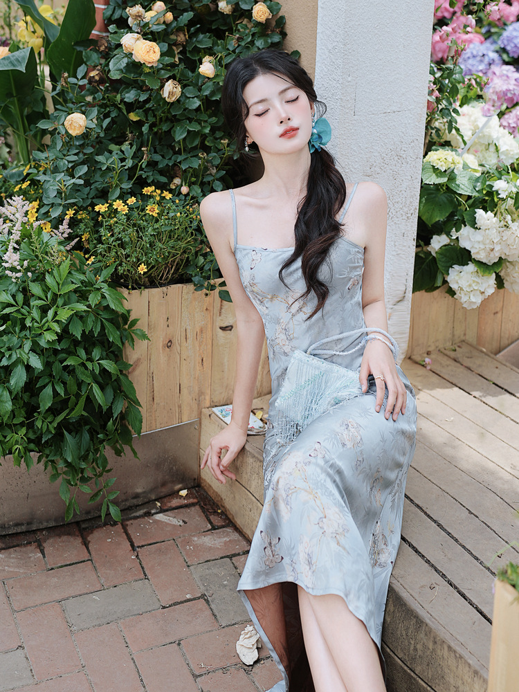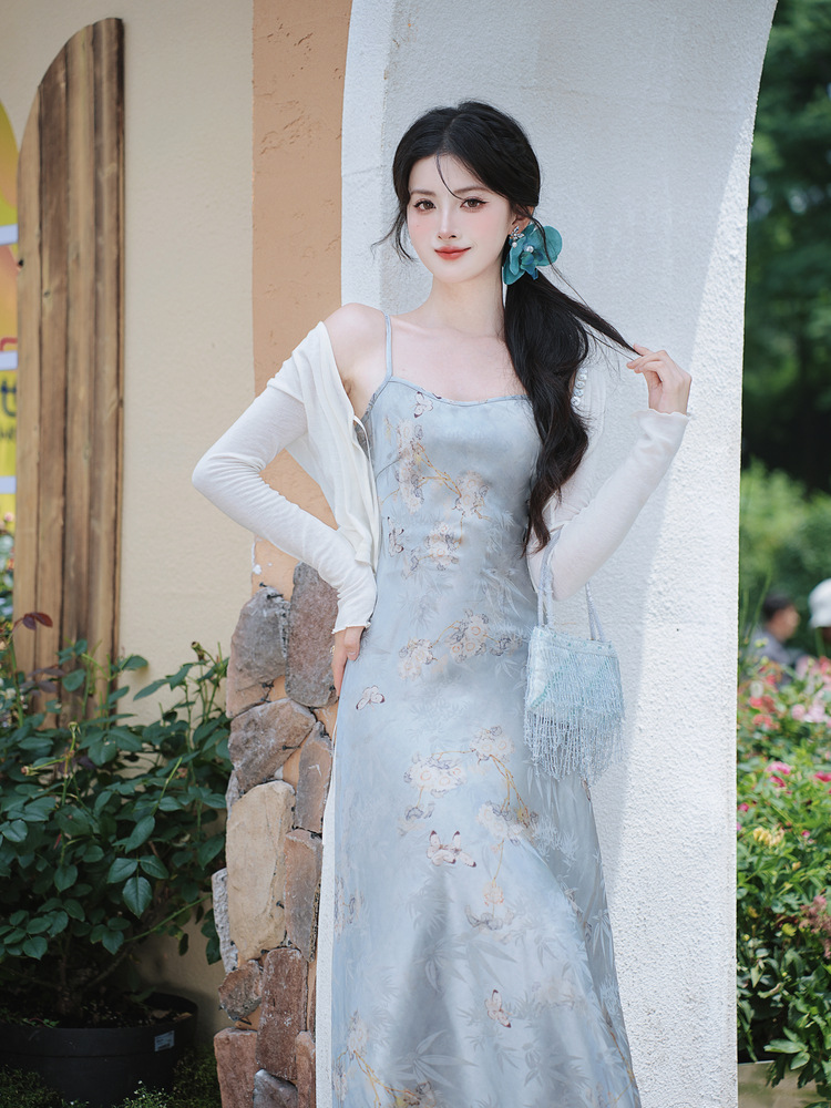 | nameOriginal | 6905# Real Shot in stock New Chinese Style Butterfly Printing Oblique Cut Sling dress Cardigan Shelf 40 |