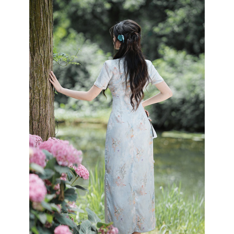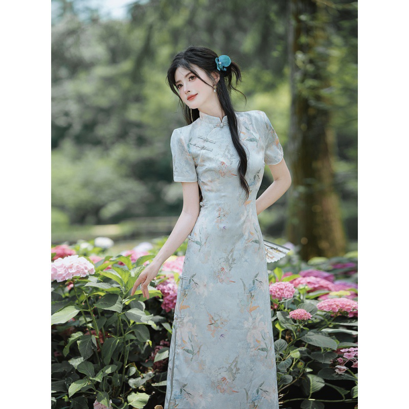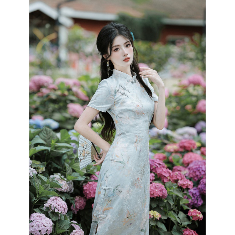 | nameOriginal | 6915# real shot in stock new Chinese dark pattern jacquard short sleeve dress cheongsam |