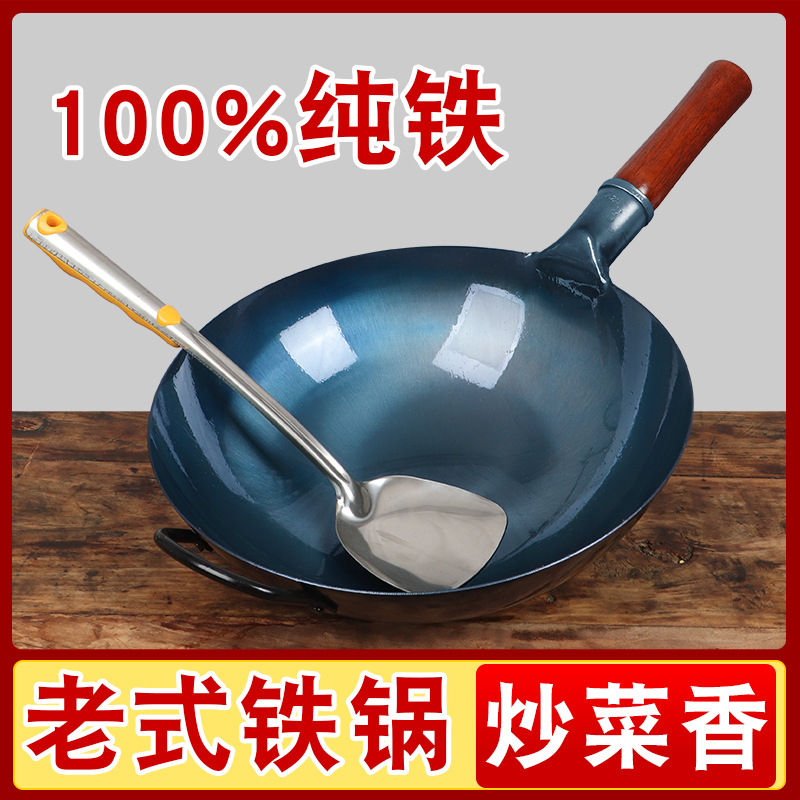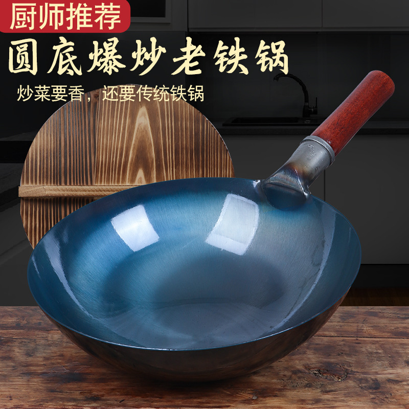 6B76 Zhangqiu same handmade pure iron pan old-fashioned round bottom iron pan household wok non-stick pan uncoated cooked iron