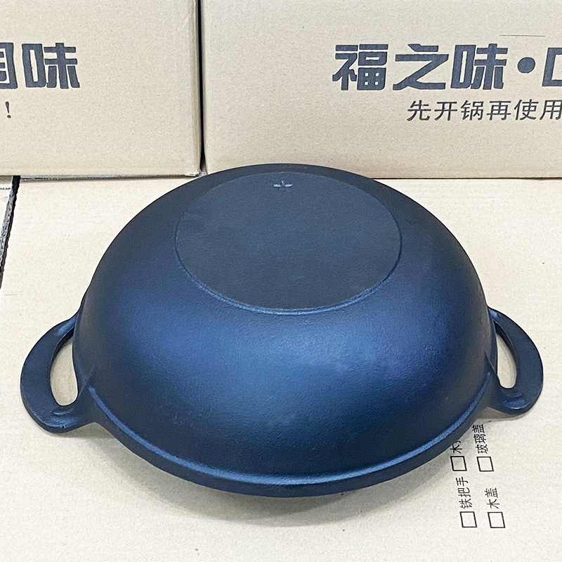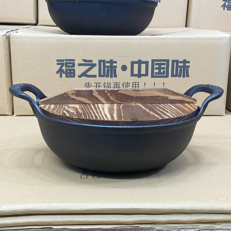 6B7627/30/32cm cast iron ingot pot binaural old-fashioned pig iron pot household cooking pot uncoated flat bottom small
