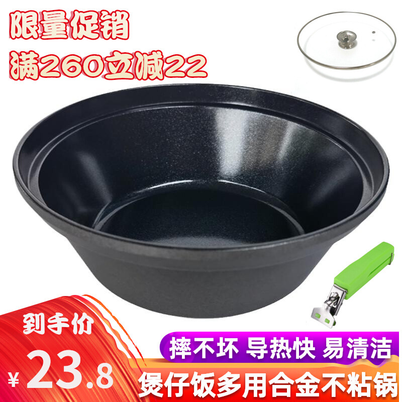 | nameOriginal | 6BUJ pot rice machine special titanium aluminum alloy pot non-stick pot tile pot high temperature resistant thickened drop-resistant black iron metal |