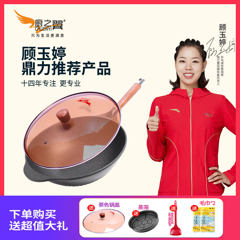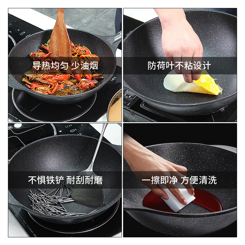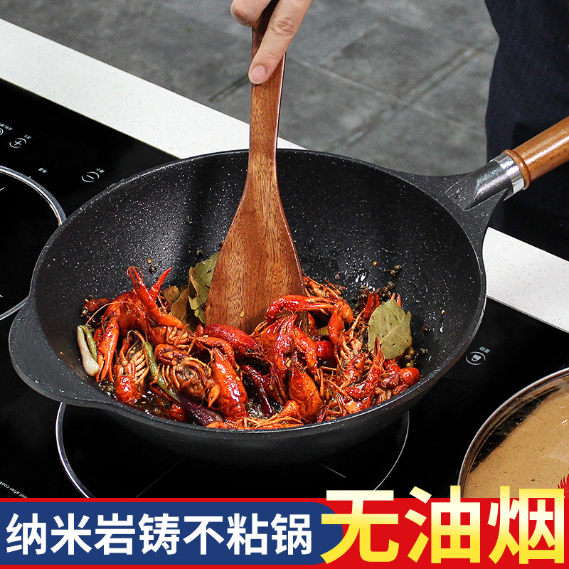 6ILY nano rock casting micro pressure non-stick pot titanium gold steel wok household wok micro smoke induction cooker suitable