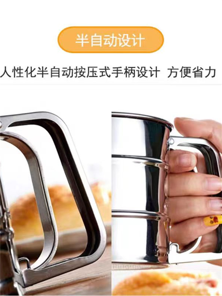 | nameOriginal | 6ILY stainless steel flour sieve with lid handheld double-layer rotating mesh sieve Cup-type strainer sugar powder sieve baking |