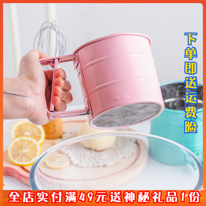 6ILY stainless steel sieve flour sieve handheld semi-automatic mesh baking round sugar powder Cup ultra-fine filter screen