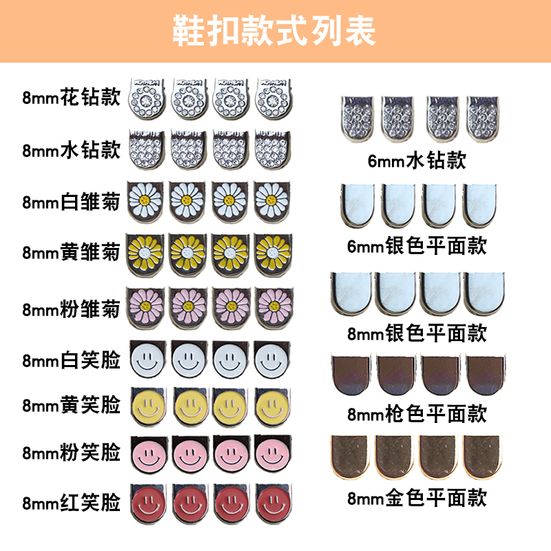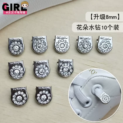 | nameOriginal | 6mm/8mm lazy shoe lace buckle metal buckle removable press flat clip white color daisy rhinestone style |