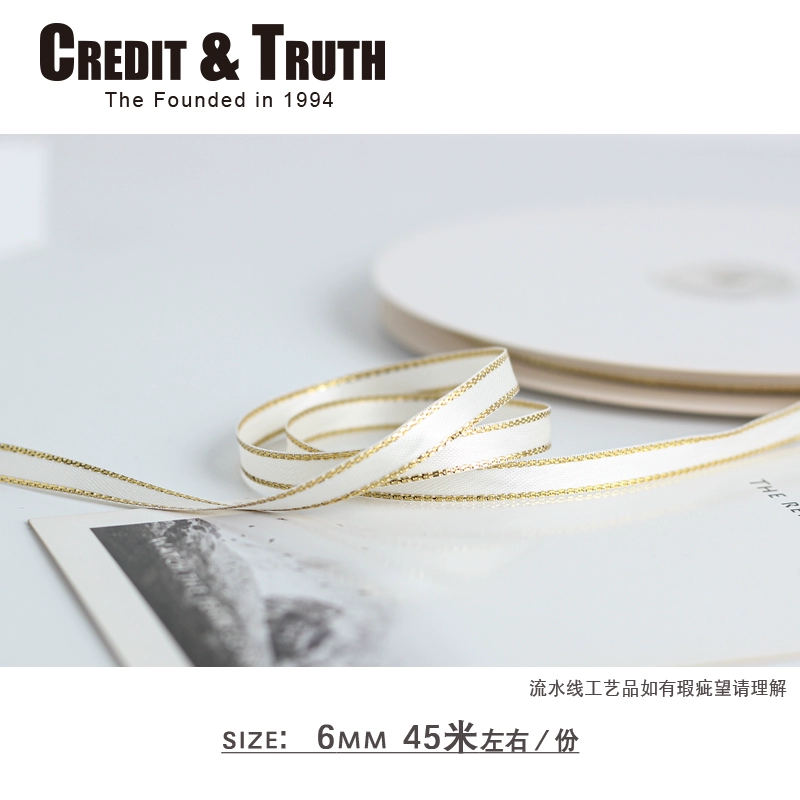 6mm double gold high density ribbon gold edge gift ribbon cake ribbon ribbon bouquet thin ribbon decoration