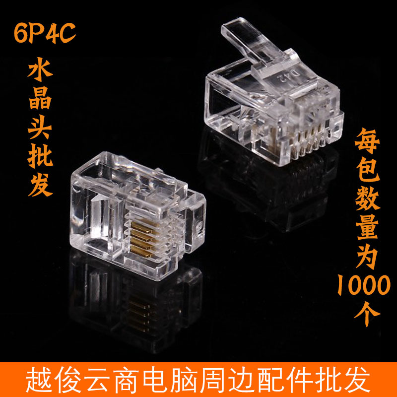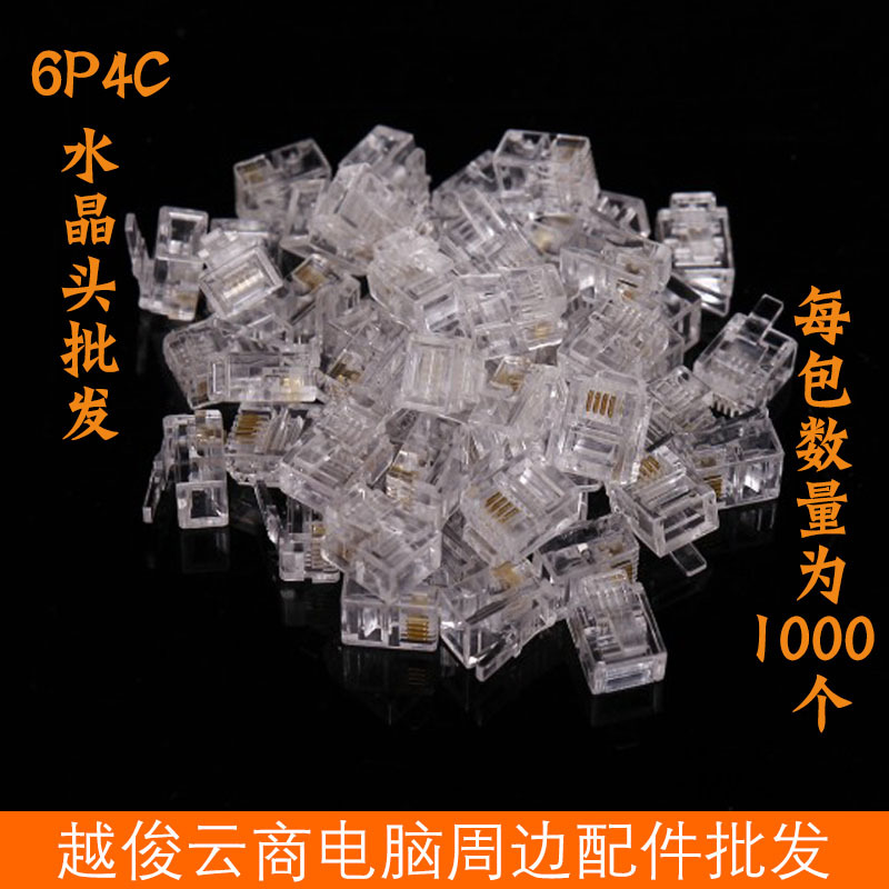 6P4C telephone Crystal Head 1000/Pack 4-core telephone Crystal Head RJ11 four-core telephone line crystal pack