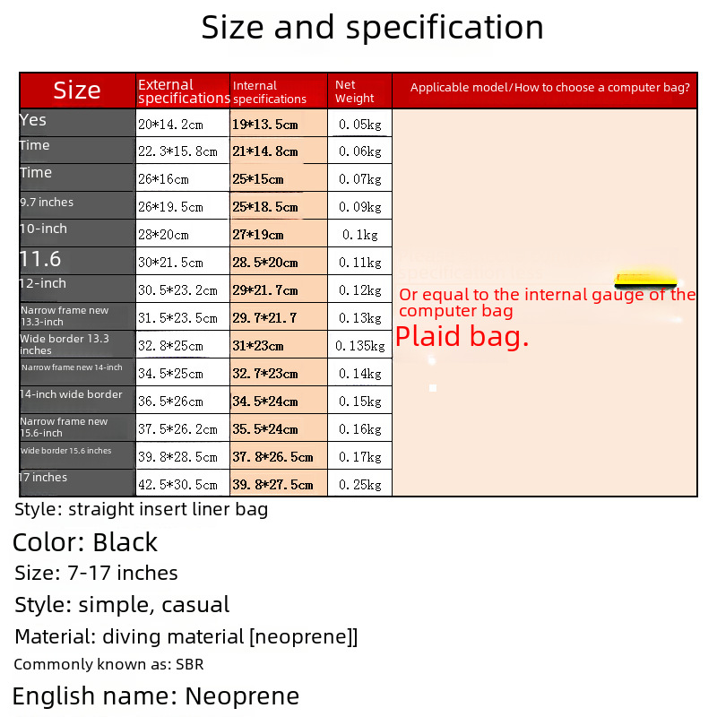 7 10 13 14 15 inch laptop bag black three-dimensional double-sided neoprene diving material liner bag