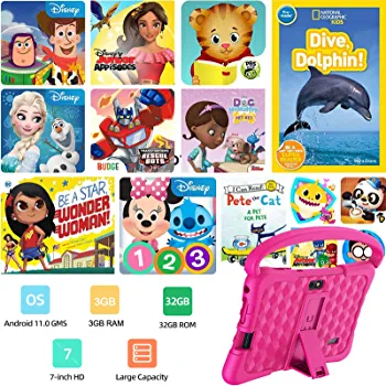This tablet boasts a 1024×600 IPS HD touch screen and runs on the Android 11.0 operating system with 3GB of RAM and 32GB of storage. It supports WiFi and Bluetooth connectivity, and features dual cameras. You can expand the storage up to 128GB with an additional micro SD card. The upgraded battery lasts over 6.5 hours, making it perfect for long trips.