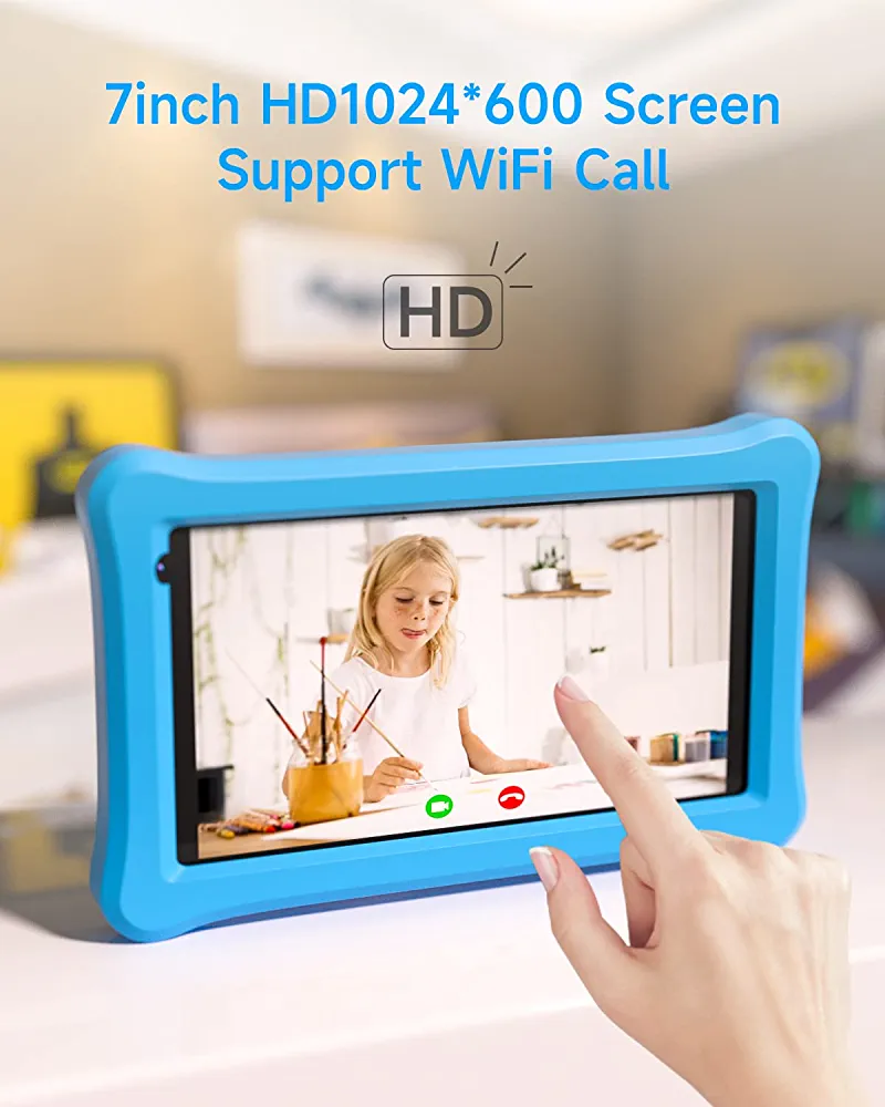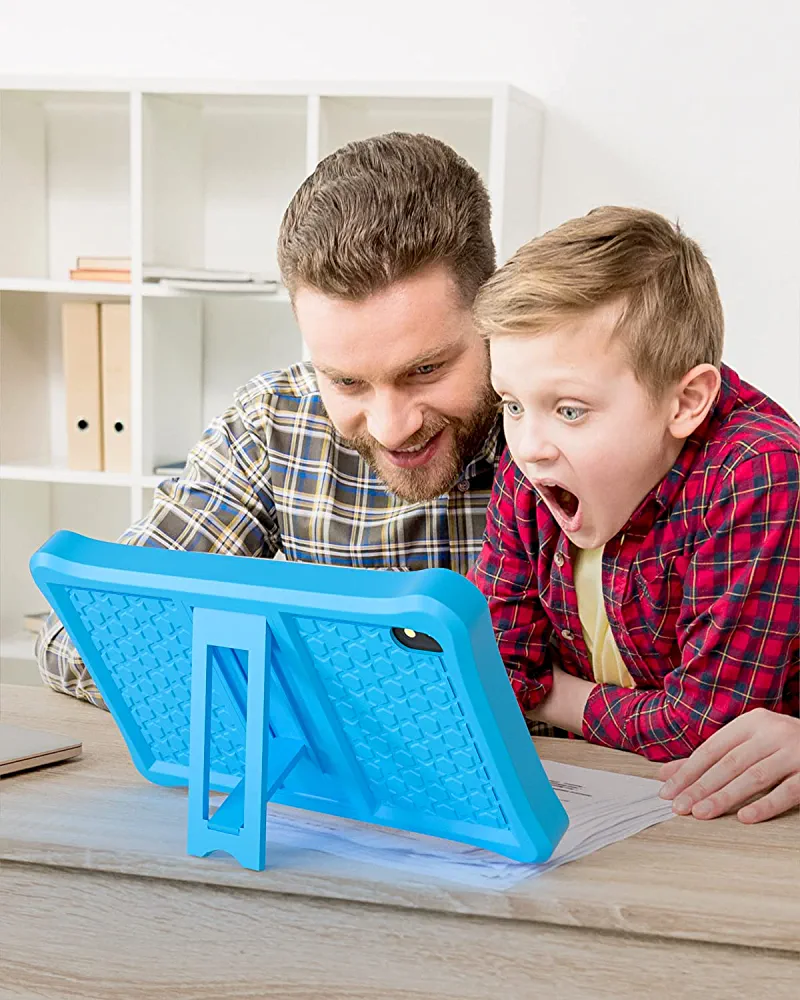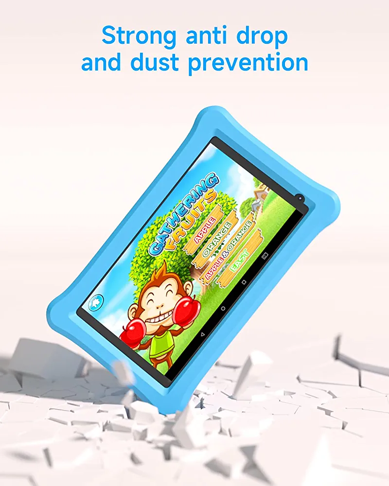 The tablet comes with a kid-proof case that is durable and protective, preventing damage caused by falling, bumping, and squeezing. The case can also stand, allowing kids to learn, watch, or play without having to hold the tablet all the time.