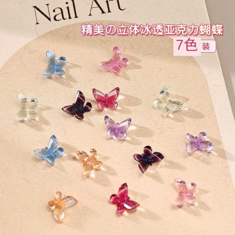 | nameOriginal | 7-color Internet celebrity ice-transparent three-dimensional butterfly nail art jewelry acrylic color transparent glitter glitter nail diamond decoration |