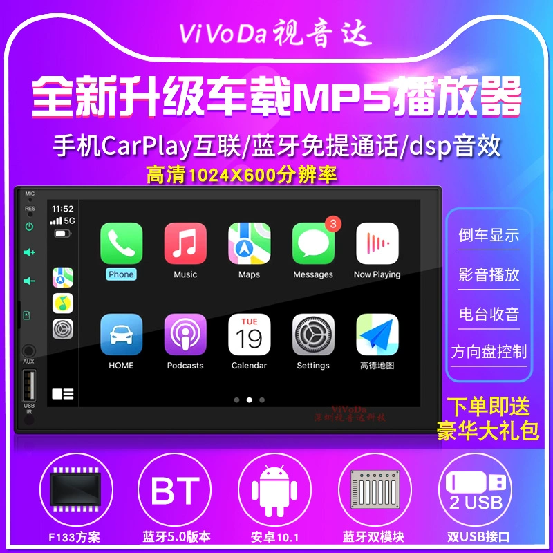 7-inch car Bluetooth mp5 player host carplay HD touch mobile phone interconnect reversing image navigation