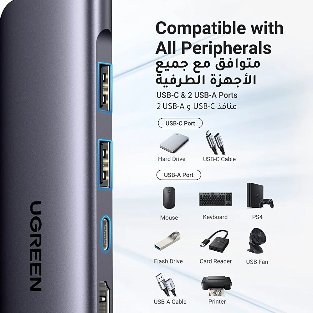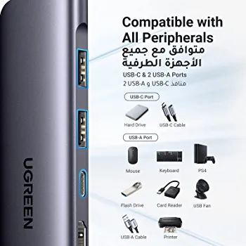 With its 100W power delivery, the UGREEN USB-C Hub ensures that your laptop stays charged and powered up. It is compatible with the latest 16in Macbook Pro and other devices that require efficient power supply.