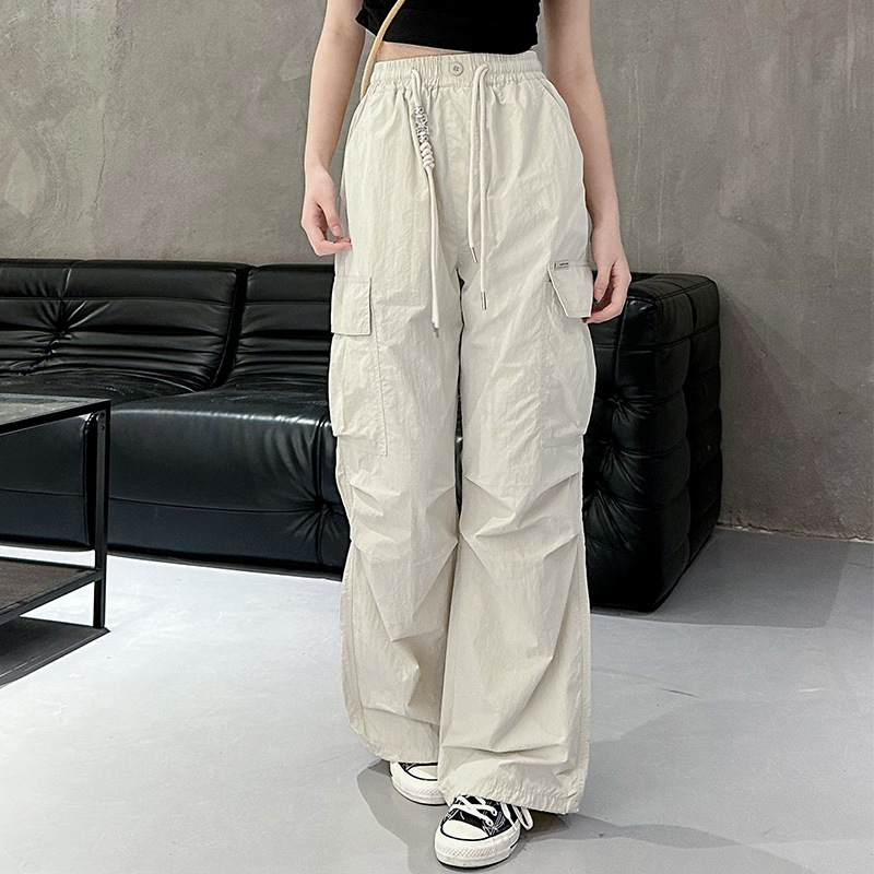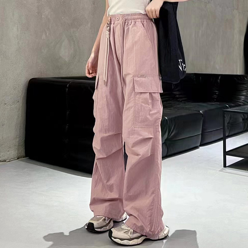 7017 Junior High School Students Overalls Summer Thin Pants Big Children Senior high school Girls Loose Western Style Wide Leg Long New Style