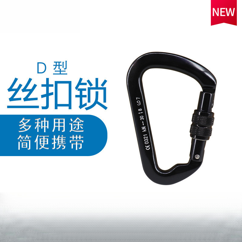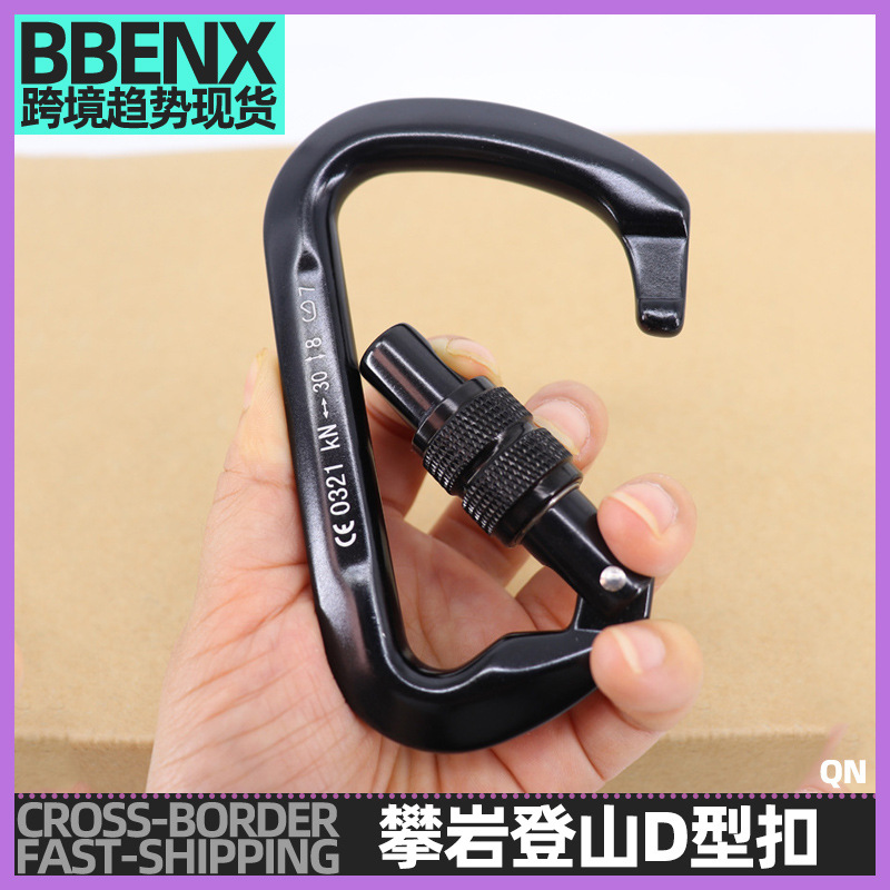 | nameOriginal | 7075 aviation aluminum D-type safety hook 30KN outdoor mountaineering climbing skydiving fitness belt hammock buckle safety hook |