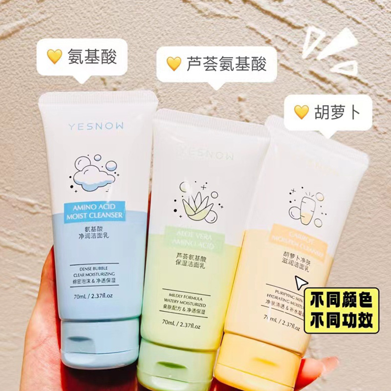 70ml Bottled Aloe Vera Amino Acid Moisturizing Facial Cleanser Gentle Moisturizing Foam Cleansing Facial Cleanser for Female Student Household