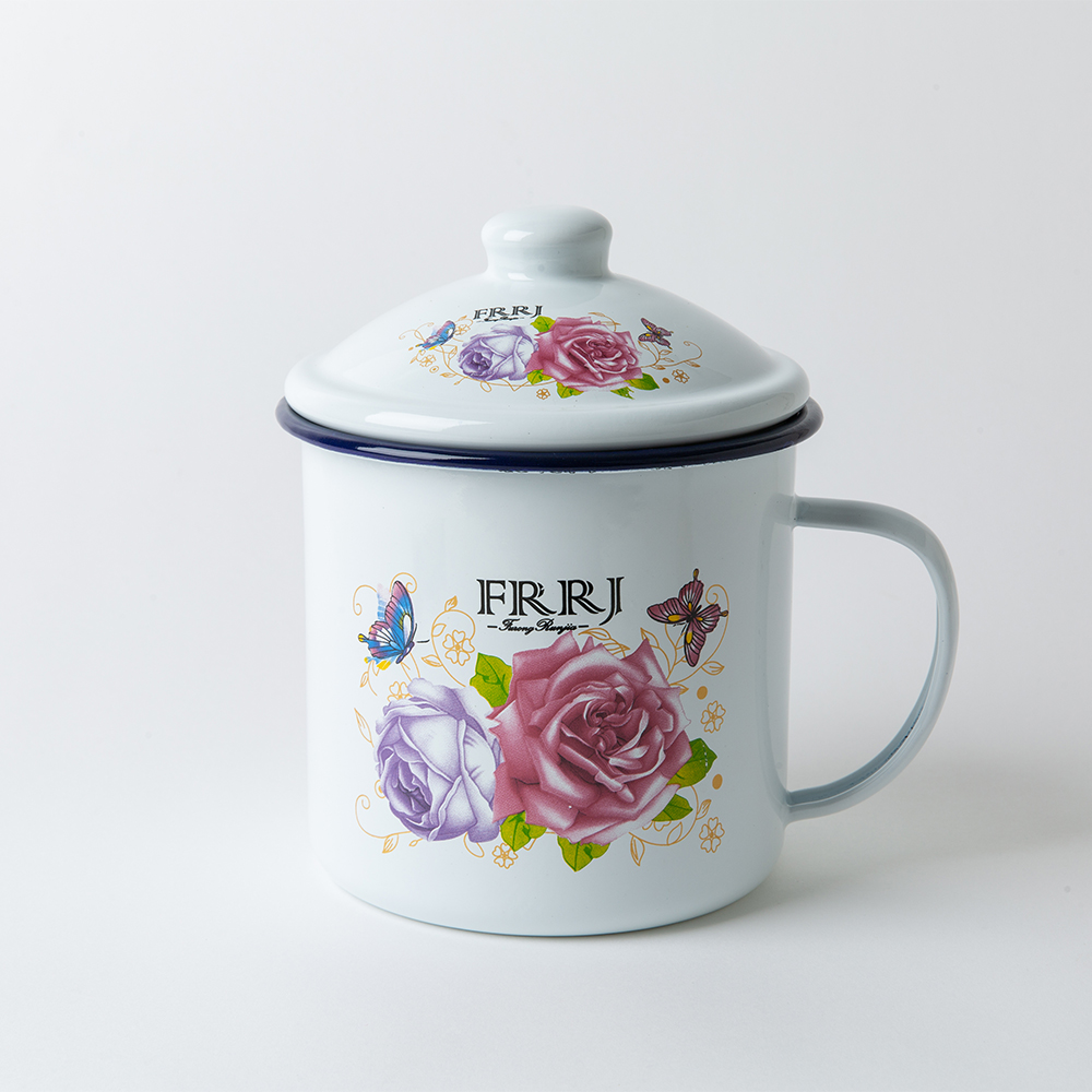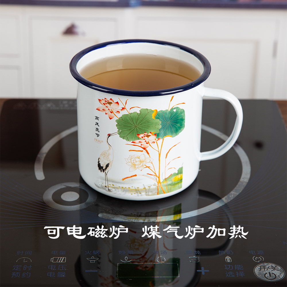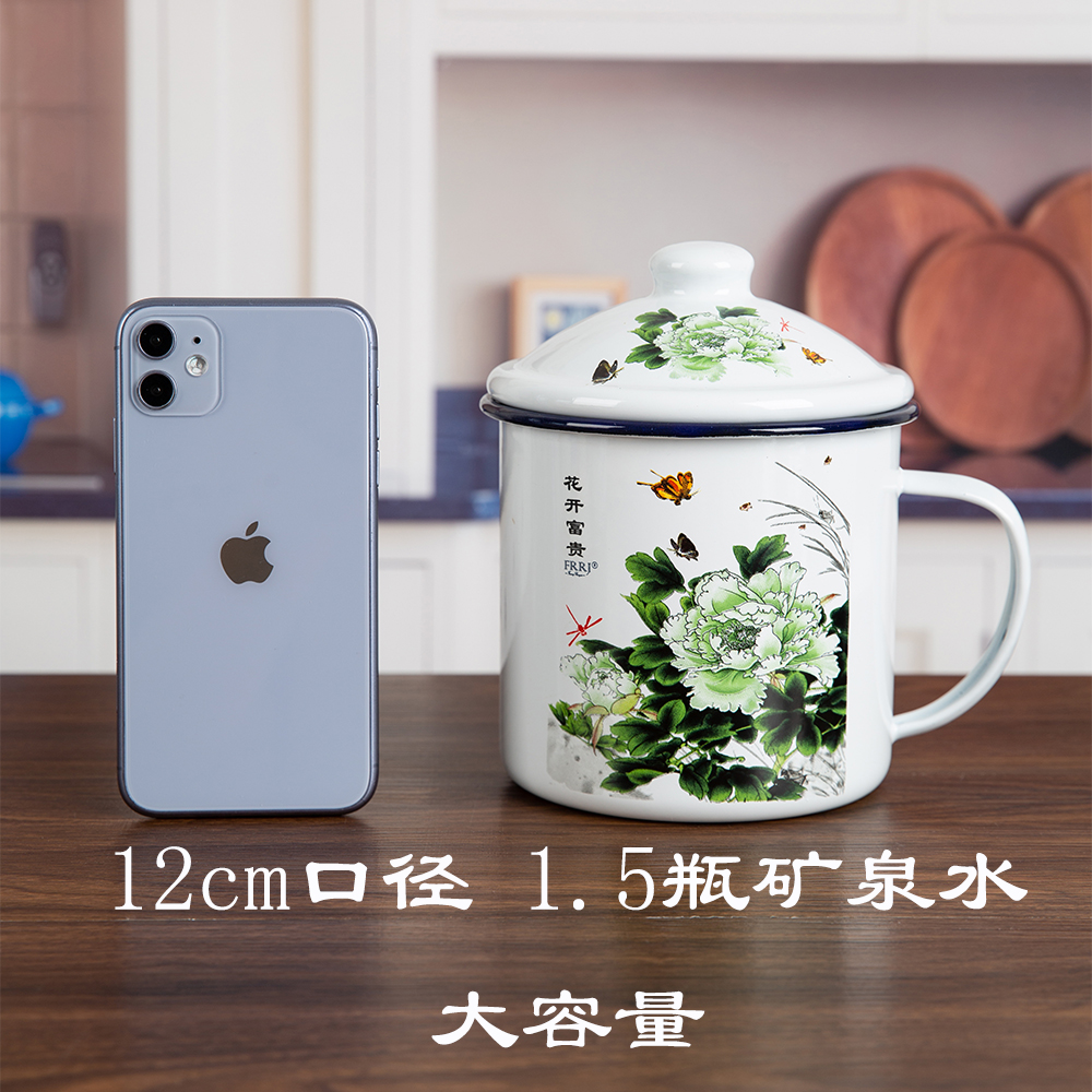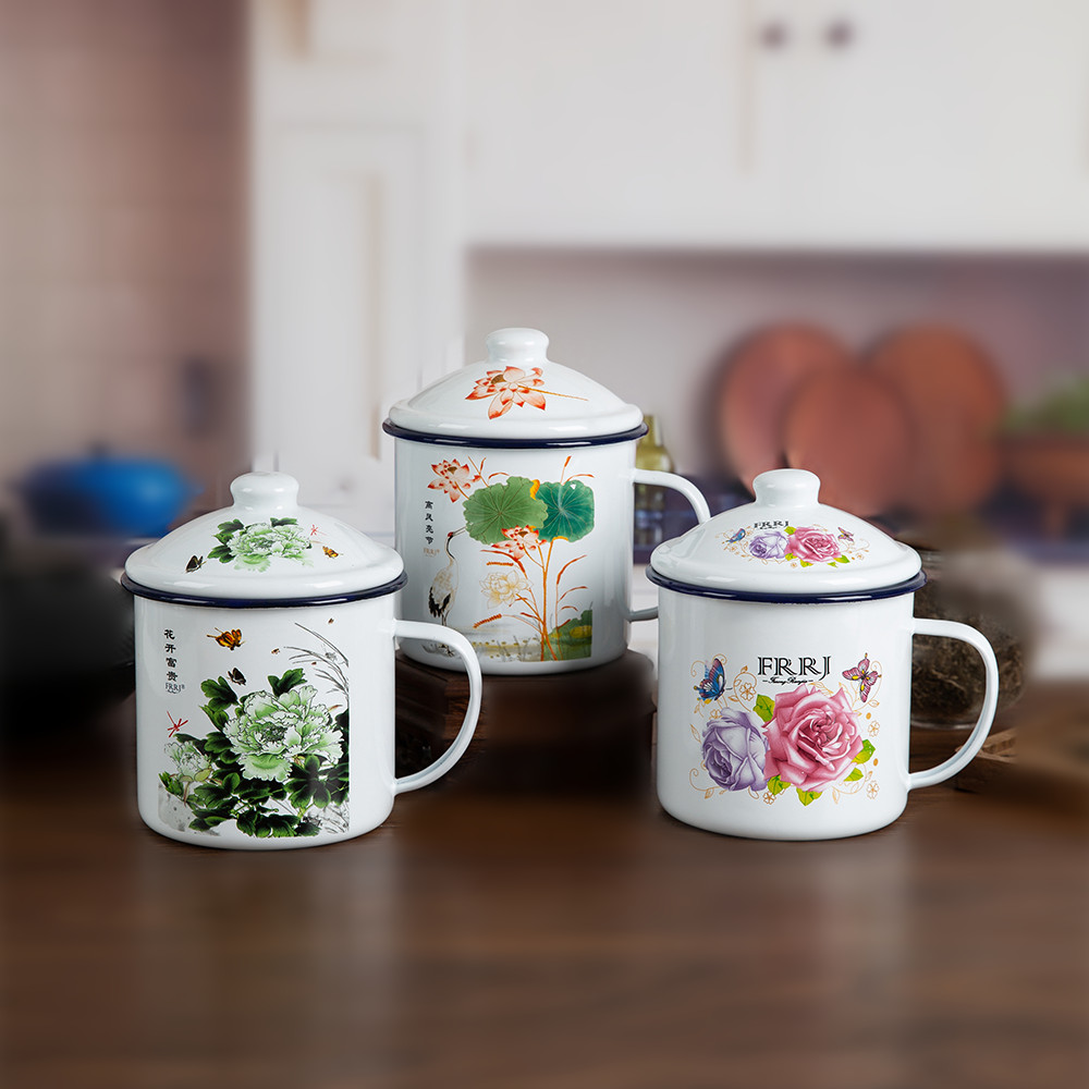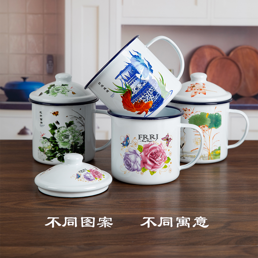 70YF Large Diameter Enamel Cup Thickened Retro Tea Tank with Lid Middle-aged and Elderly Water Cup Nostalgic Tea Cup Batch
