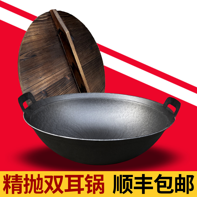 | nameOriginal | 71TX double-ear pig iron pot old-fashioned rural round bottom large iron pot household thickened polished cast iron wok without coating |