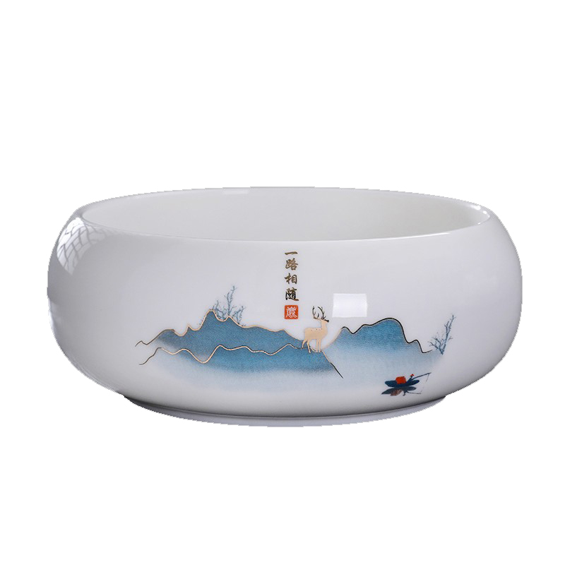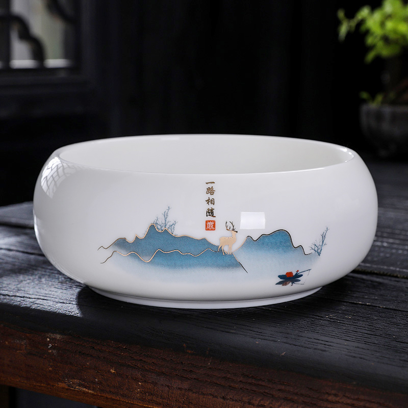 71TX Sheep Fat Jade Tea Washing Large Water Pot Household Pen Washing White Porcelain Tea Cup Bowl Tea Dregs Tank Tea Ceremony Kung Fu Tea Set Tea