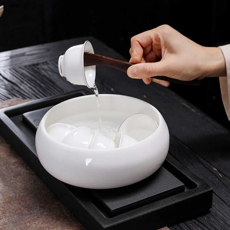 71TX Sheep Fat Jade Tea Washing Large Water Pot Household Pen Washing White Porcelain Tea Cup Bowl Tea Dregs Tank Tea Ceremony Kung Fu Tea Set Tea